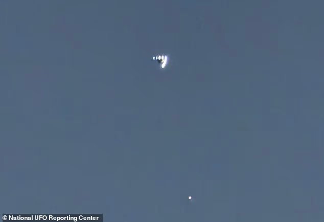据 NUFORC 称今年有几份报告特别提到了在其表面看到一个 V 形楔子或三角形,并有多个灯光飞过美国上空。