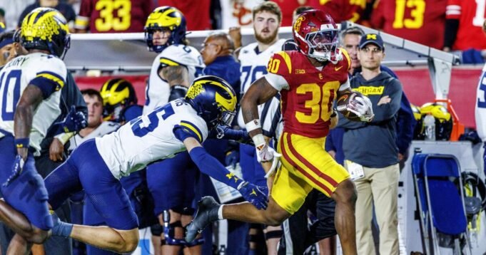但那是在周六之前,在米勒看到密歇根州防守的一个方面之前,在一支支队起飞之前,改变了比赛,打破了比赛,并最终在一份声明中解除了南加州大学的比赛, 31-13获胜 超过 15 密歇根州。