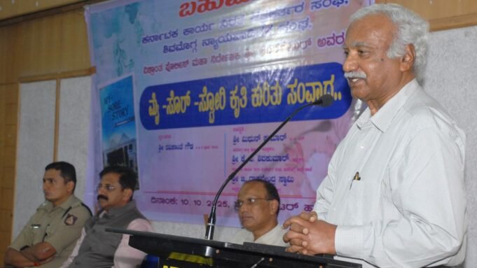 周五,在由文学论坛 Bahumukhi、卡纳塔克邦工作记者联盟 Shivamogga 区单位和 Shivamogga 的 Shivamogga 律师协会联合举办的活动中,作者与观众就他的书进行了互动。