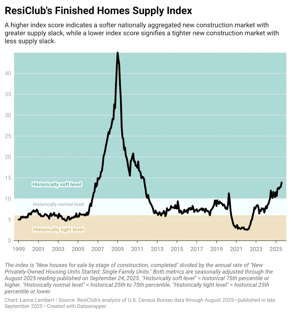 为了将已竣工和未售出的新单户住宅的数量纳入历史背景,我们有 残存俱乐部商品房竣工供应指数。