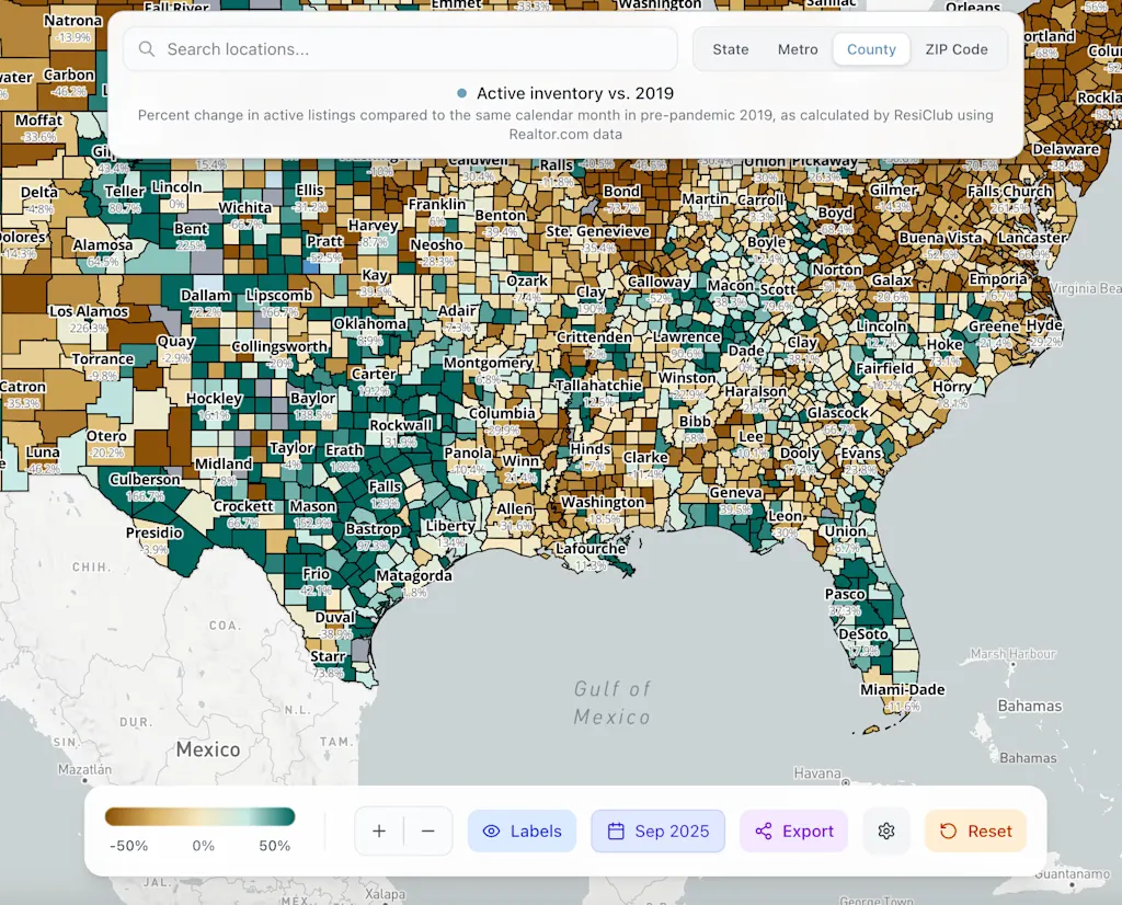 事实上,一些建筑商正面临价格压力,特别是在佛罗里达州和德克萨斯州的部分地区,这些地区的转售库存远高于 2019 年大流行前的水平。请参阅屏幕截图 残存俱乐部 终端 以下。