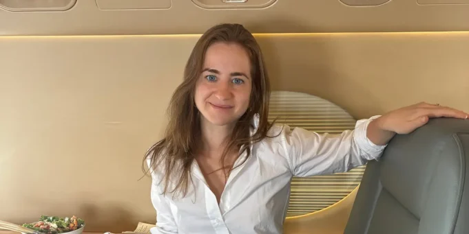 感谢 Starlink 互联网,我可以在另一名乘客通过 FaceTime 与他的妻子进行视频通话时浏览 Instagram。浴室抽屉里有很多豪华洗浴用品,从依云 (Evian) 面部喷雾到莫尔顿布朗 (Molton Brown) 漱口水。